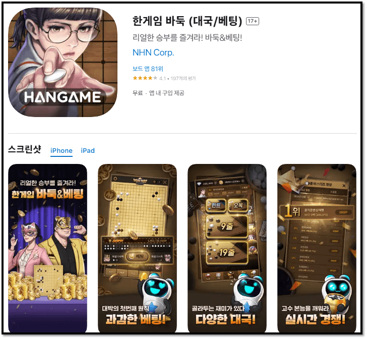 한게임 바둑 모바일 앱 스마트폰 설치방법